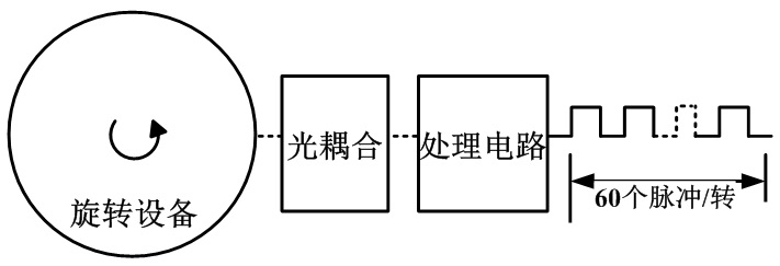 2、轉速測量:通過光耦合及相應的處理電路,將轉速信號轉換成脈沖信號輸出,旋轉設備每轉動一圈輸出60個脈沖。